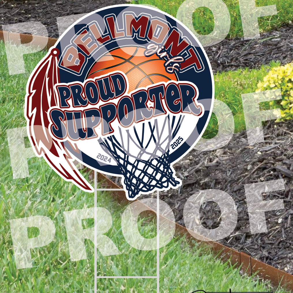 Support the Bellmont Girls Basketball Booster Club with a custom Basketball Yard Sign featuring your player’s name and number! Perfect for showing pride at home, in your neighborhood, or around town.